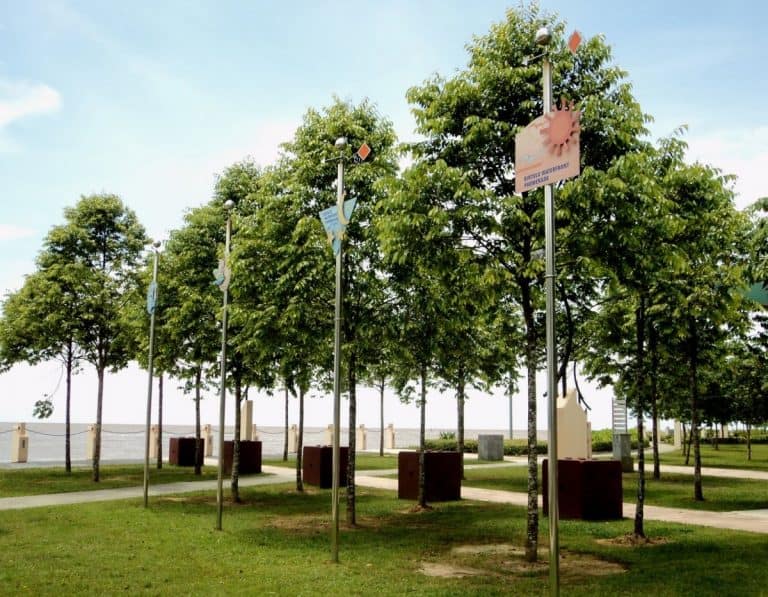 Nhắc đến các loại cây xanh trồng trong công viên thì không thể nào bỏ qua cây lim sét. Đây là cây thân gỗ thuộc loài cây trung mộc, có chiều cao khoảng 20 – 30m. Lá của cây là dạng lá kép lông chim 2 lần chẵn. Hoa của cây thường được mọc ở đầu ngọn cây bao gồm có 5 cánh.